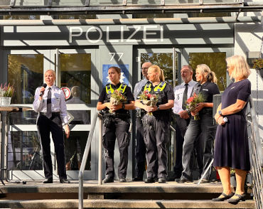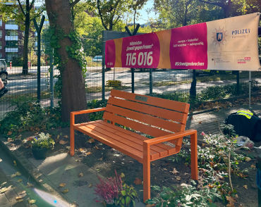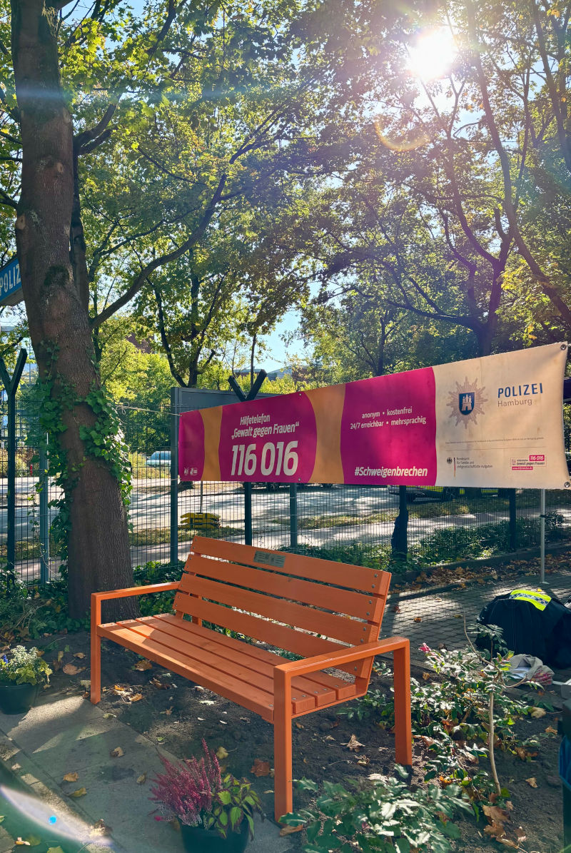 Ein weiteres Highlight des Tages war die Einweihung einer „Orange Bank“, welche auf dem Gelände des PK 44 aufgestellt wurde. Sie ist das Symbol der Aktion „#OrangetheWorld – gegen Gewalt an Frauen und Mädchen“. Ziel der Kampagne und des PK 44 ist es, diese Problematik in die Öffentlichkeit zu tragen und mittels auf der Bank angebrachtem QR-Code auf konkrete Hilfsangebote aufmerksam zu machen.