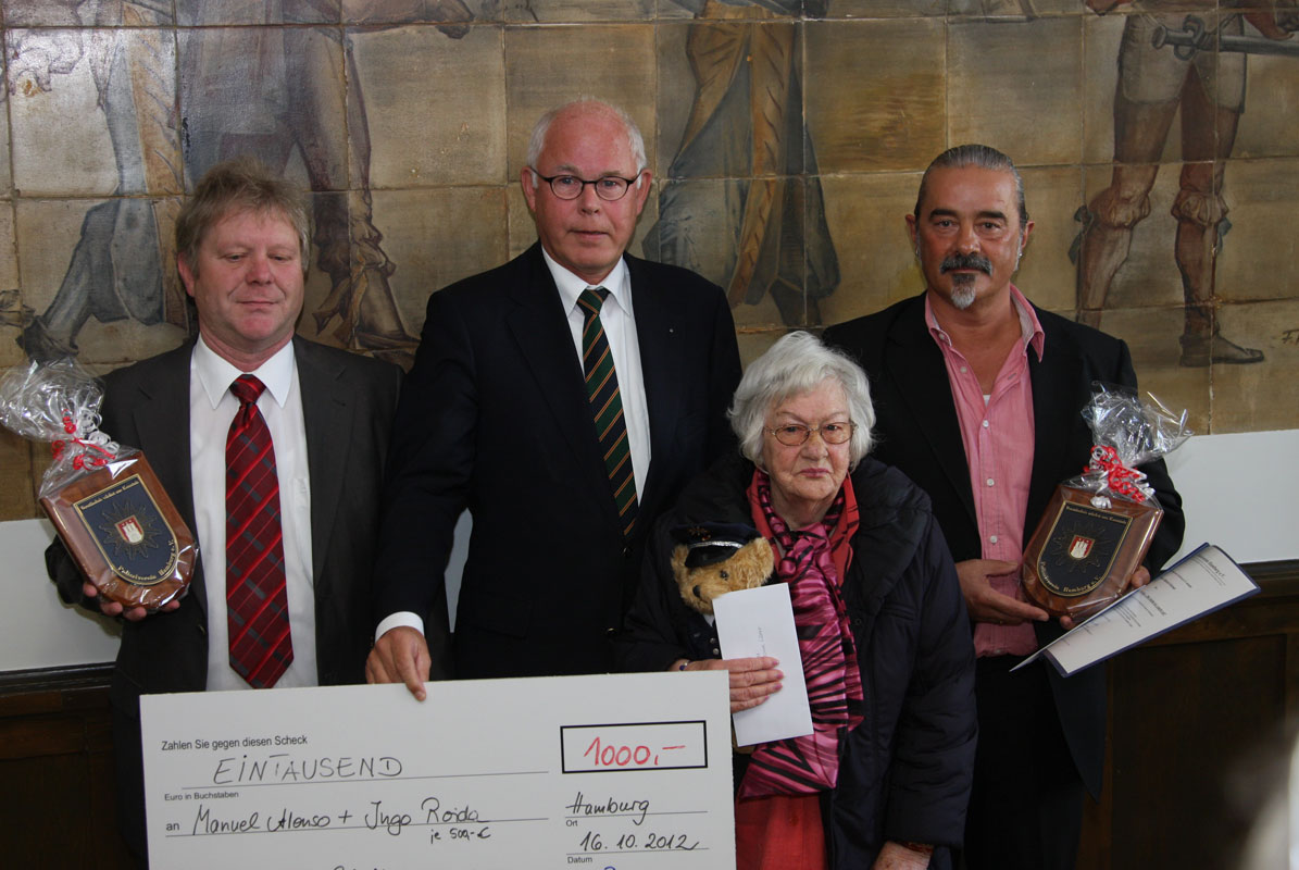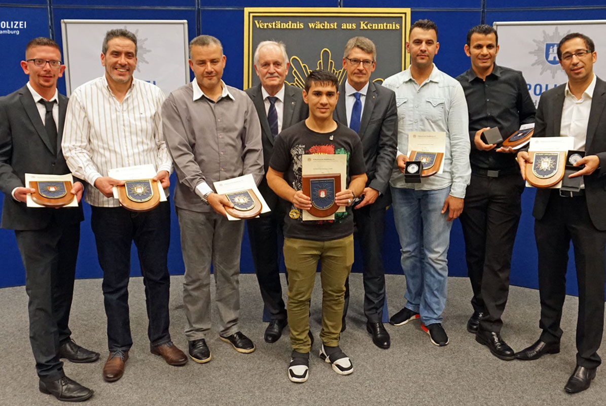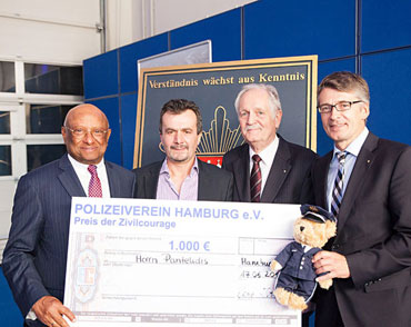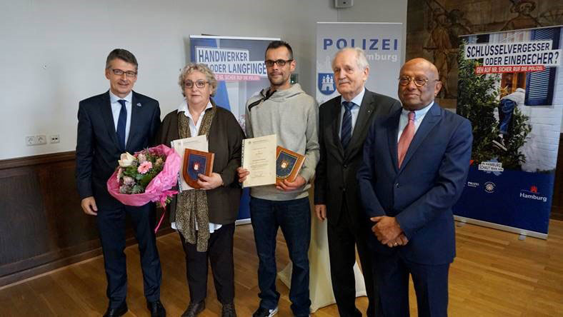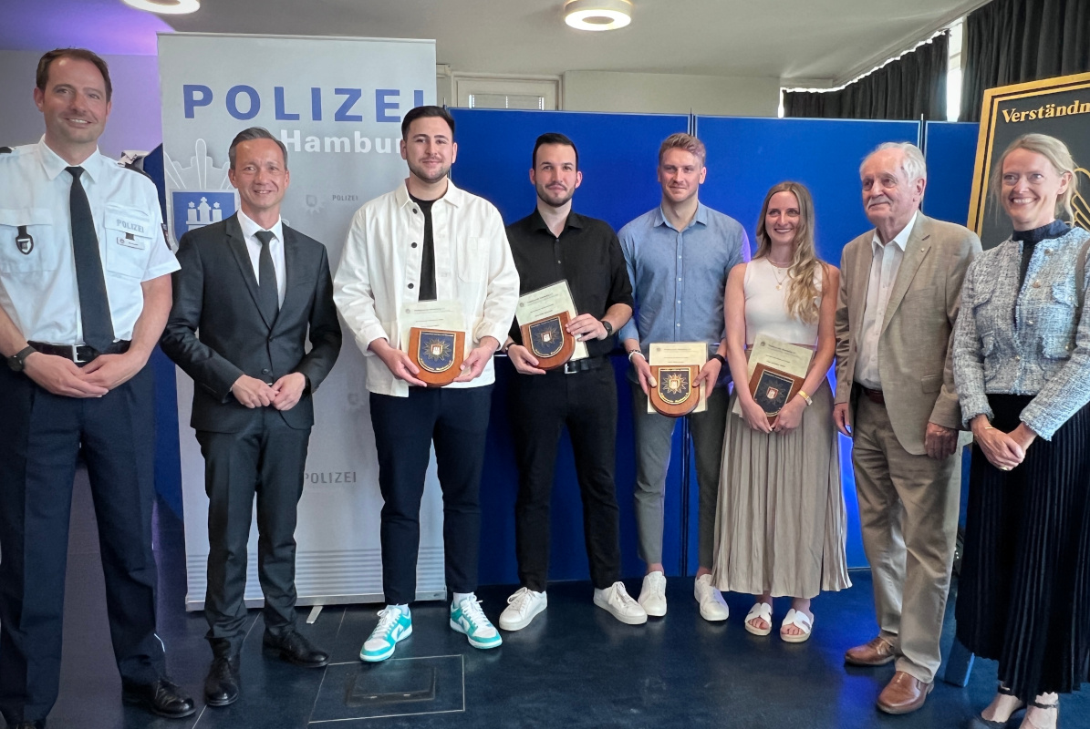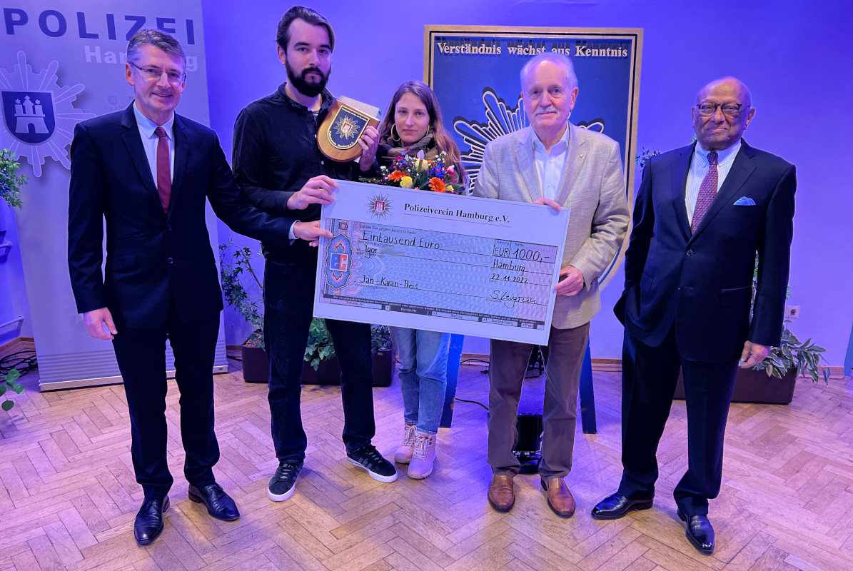 Der Verletzte wollte nicht ins Krankenhaus. So entschlossen sich die vier kurzerhand, ihn in ihr Hotel mitzunehmen. Dort zahlten sie für ihn auf eigene Rechnung ein Zimmer für eine Nacht. Für all das wurden sie mit dem „Ian-Karan-Preis für Zivilcourage 2024“ auf der Davidwache in Hamburg-St. Pauli ausgezeichnet.
